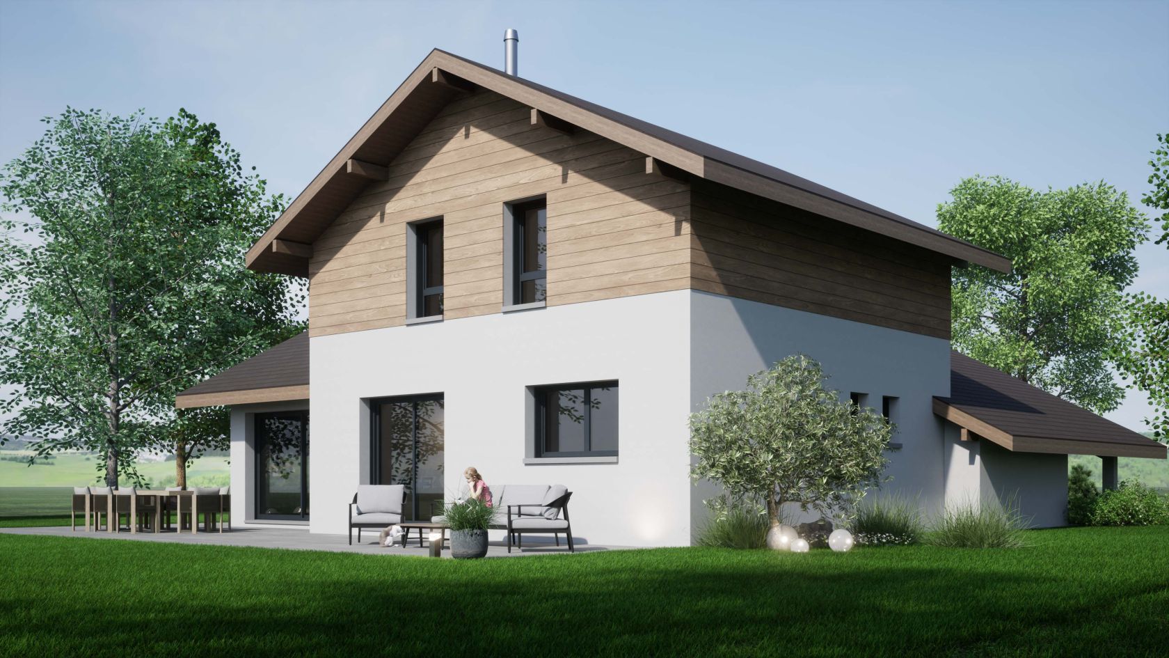 Découvrez ce projet de maison individuelle de 120 m² avec garage, idéalement situé entre Evires et Groisy, au calme, en Haute-Savoie.
