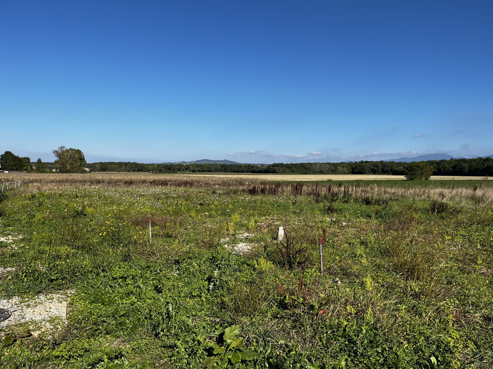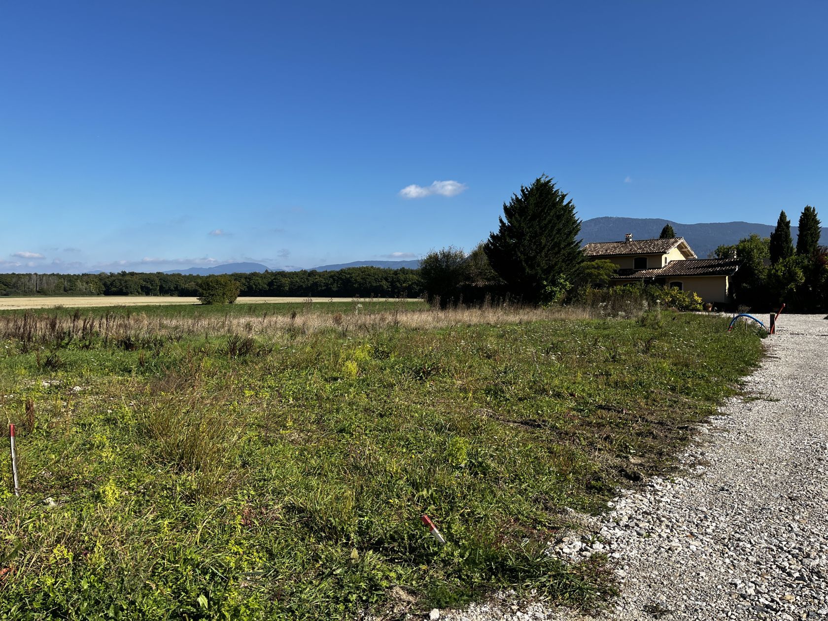 Terrain au calme à la fin d’une voie sans issue, cadre champetre dans lieu dit pavillonnaire de qualité